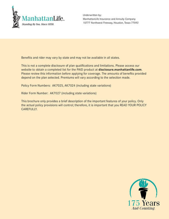 The Personal Accident Indemnity Delivery (PAID) from Manhattan Life help you pay for out-of-pocket expenses and provides benefits to you or your family for many of the accidents that can happen without warning.
